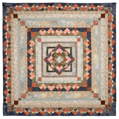 Most important was that the quilt have a grounded feel, nothing flyaway airy in the design. The newly married couple pointed to a terra cotta pot with a cactus inside saying they liked the colors. They wanted nothing too bright which would be jarring, light but not necessarily pastel. Instead, the intricacy of grains of sand, seafoam green, an ocean night sky, and everything washed by the sun.